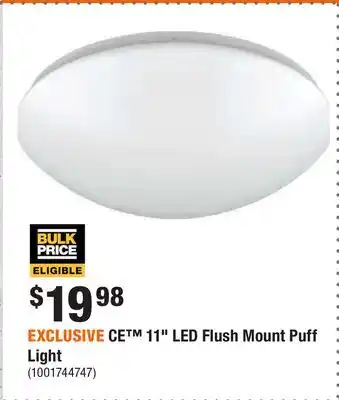 The price of EXCLUSIVE CE 11 LED Flush Mount Puff Light can be found at the top of the page, together with the dates during which the offer is available. You can also check the price in the current Home Depot flyer or on the Home Depot website. Promotional offers assure you of buying Home Depot products at the lowest price.