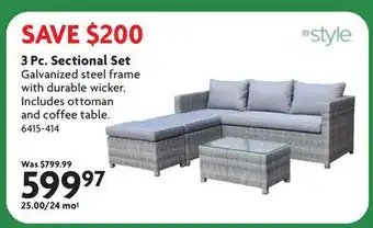 The 3 Pc. Sectional Set is available this week at Home Hardware with a valuable discount. On this page, you will find details about the current promotional price, the promotion terms, and any special discounts. You can also explore other related deals and promotions for 3 Pc. Sectional Set to make sure you get the best value.