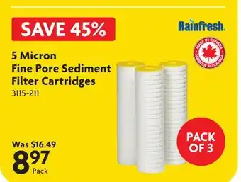 This 5 Micron Fine Pore Sediment Filter Cartridges is now on sale at Home Hardware. Check the current selection filled with great deals and discounts. Purchase 5 Micron Fine Pore Sediment Filter Cartridges online via Home Hardware website or get it at the best available price in person. Flyerdeals.ca gathers the best 5 Micron Fine Pore Sediment Filter Cartridges promotions for you. Click on the bell icon to receive a free notification when this product is on sale again.5 Micron Fine Pore Sediment Filter Cartridges promotions for next week