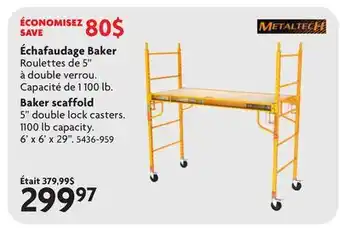 This Baker scaffold is now on sale at Home Hardware. Check the current selection filled with great deals and discounts. Purchase Baker scaffold online via Home Hardware website or get it at the best available price in person. Flyerdeals.ca gathers the best Baker scaffold promotions for you. Click on the bell icon to receive a free notification when this product is on sale again.Baker scaffold promotions for next week