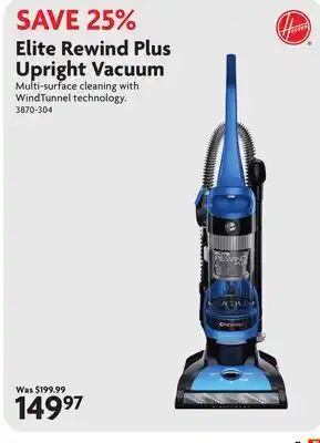 This promotion is available in various stores, view all products to get the cheapest Elite Rewind Plus Upright Vacuum. If you'd like to find out whether this product has a bigger discount in another store, check the category 'DIY'. You may also find these offers interesting: HOOVER REWIND Upright vacuum cleaner, Windtunnel Elite Upright Vac & Upright Bag Vacuum Sealer.