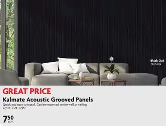 The Kalmate Acoustic Grooved Panels Black Oak is currently available at a discount at Home Hardware. On this page, you will find all the details about the current price, the promotion terms, and the validity period. You can also explore comparable deals and promotions for Kalmate Acoustic Grooved Panels Black Oak to make the most cost-effective choice.