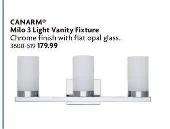 This Milo 3 Light Vanity Fixture is now on sale at Home Hardware. Check the current selection filled with great deals and discounts. Purchase Milo 3 Light Vanity Fixture online via Home Hardware website or get it at the best available price in person. Flyerdeals.ca gathers the best Milo 3 Light Vanity Fixture promotions for you. Click on the bell icon to receive a free notification when this product is on sale again.Milo 3 Light Vanity Fixture promotions for next week
