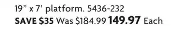 The price of Scaffold System 19 x 7' platform can be found at the top of the page, together with the dates during which the offer is available. You can also check the price in the current Home Hardware flyer or on the Home Hardware website. Promotional offers assure you of buying Home Hardware products at the lowest price.