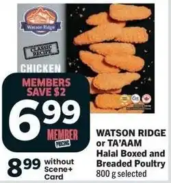 Watson ridge or ta'aam halal boxed and breaded poultry promotion at IGA