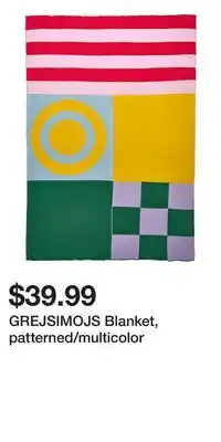 Current GREJSIMOJS Blanket, patterned/multicolor deal at IKEA from 26-02 until 4-03.