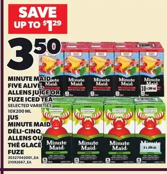 MINUTE MAID, FIVE ALIVE, ALLENS JUICE OR FUZE ICED TEA 10X200 ML offers and online promotions