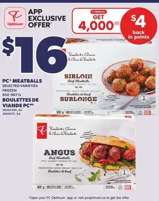 This promotion is available in various stores, view all products to get the cheapest PC MEATBALLS. If you'd like to find out whether this product has a bigger discount in another store, check the category 'Grocery'. You may also find these offers interesting: PC MEATBALLS (907g) or CHICKEN WINGS (800g - 907g), PC MEATBALLS SELECTED VARIETIES FROZEN & PC MEATBALLS SELECTED VARIETIES FROZEN, 850-907 G.