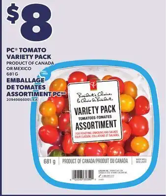 This promotion is available in various stores, view all products to get the cheapest PC TOMATO VARIETY PACK 681 G. If you'd like to find out whether this product has a bigger discount in another store, check the category 'Grocery'. You may also find these offers interesting: GRAPE TOMATO, 283 G, DUNLOP PICKS 12-PACK - VARIETY & White Claw Variety 24 Pack.