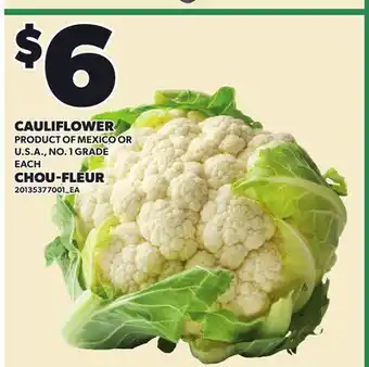 This promotion is available in various stores, view all products to get the cheapest CAULIFLOWER, EACH. If you'd like to find out whether this product has a bigger discount in another store, check the category 'Grocery'. You may also find these offers interesting: FARMER'S MARKET GREENHOUSE PEPPERS 4' S OR CAULIFLOWER, . EACH, CAULIFLOWER & Cauliflower.