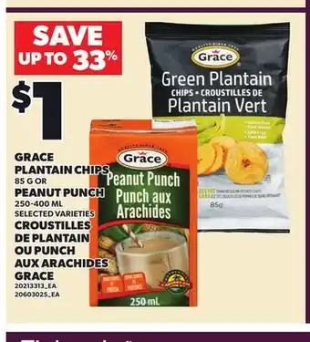 GRACE PLANTAIN CHIPS, 85 G OR PEANUT PUNCH, 250-400 ML promotion at Independent Grocer