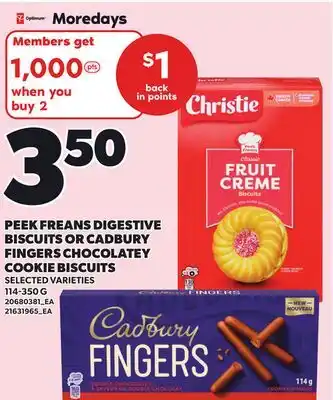 PEEK FREANS DIGESTIVE BISCUITS OR CADBURY FINGERS CHOCOLATEY COOKIE BISCUITS offer at Independent Grocer