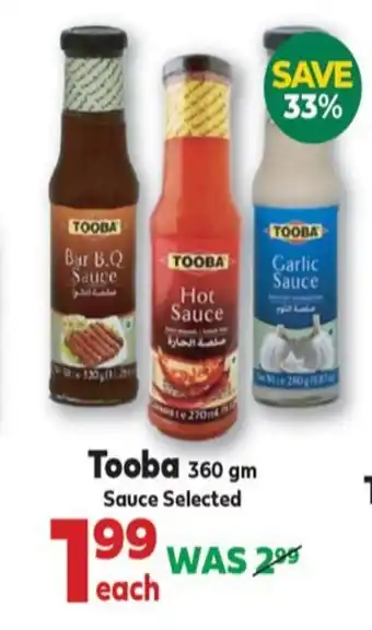 This promotion is available in various stores, view all products to get the cheapest Tooba Sauce Selected. If you'd like to find out whether this product has a bigger discount in another store, check the category 'Grocery'. You may also find these offers interesting: Tooba Masala, Tooba Crystal Jelly Assorted & Tooba Ginger Garlic Paste.