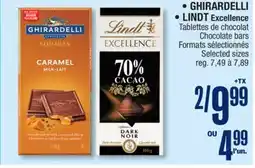 GHIRARDELLI, LINDT Excellence Chocolate bars Selected sizes