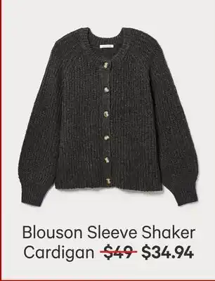 This promotion is available in various stores, view all products to get the cheapest Blouson Sleeve Shaker Cardigan. If you'd like to find out whether this product has a bigger discount in another store, check the category 'Clothing and shoes'. You may also find these offers interesting: TARTARE SHAKER | SHAKER TARTARE, Sauder 3-Door Shaker Wardrobe & Camo Short-Sleeve and Long-Sleeve Combo.