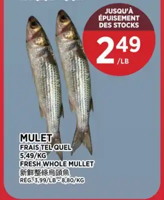 This promotion is available in various stores, view all products to get the cheapest FRESH WHOLE MULLET. If you'd like to find out whether this product has a bigger discount in another store, check the category 'Grocery'. You may also find these offers interesting: FRESH WHOLE CHICKEN, WHOLE FRESH SEABREAM & Fresh Small Whole Chicken.