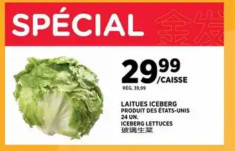 This promotion is available in various stores, view all products to get the cheapest ICEBERG LETTUCES. If you'd like to find out whether this product has a bigger discount in another store, check the category 'Grocery'. You may also find these offers interesting: laitue Iceberg | Iceberg lettuce, LAITUE ICEBERG | ICEBERG LETTUCE & ICEBERG SALAD.