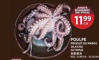 This promotion is available in various stores, view all products to get the cheapest OCTOPUS. If you'd like to find out whether this product has a bigger discount in another store, check the category 'Grocery'. You may also find these offers interesting: Cleaned octopus frozen or defrosted, HUNTER MARINE COOKED OCTOPUS LEGS & NETTOYÉE DÉCONGELÉE OU SURGELÉE | CLEANED OCTOPUS FROZEN OR DEFROSTED.