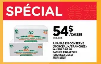 The price of YAMADA CANNED PINEAPPLES (CHUNKS/SLICES) can be found at the top of the page, together with the dates during which the offer is available. You can also check the price in the current Kim Phat flyer or on the Kim Phat website. Promotional offers assure you of buying Kim Phat products at the lowest price.