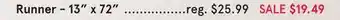 This promotion is available in various stores, view all products to get the cheapest Runner. If you'd like to find out whether this product has a bigger discount in another store, check the category 'Kitchen and Bathroom'. You may also find these offers interesting: Glitter Table Runner, Marseilles Runner & MotoMaster All-Season Mat with Runner, 3 Pc.