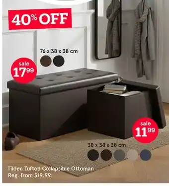 Many people prepare their shopping list in advance, using the latest deals and promotions. Flyerdeals.ca is among the first to share next week’s promotions, so you know whether to wait before making a purchase or buy right away at the best price. Our team updates all Tilden Tufted Collapsible Ottoman promotions quickly, allowing you to plan with both this week’s and next week’s offers. Some promotions are only available during specific dates or online.Frequently asked questions about Tilden Tufted Collapsible Ottoman