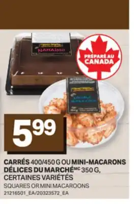 This promotion is available in various stores, view all products to get the cheapest CARRÉS, 400/450 G OU MINI-MACARONS, 350 G | SQUARES OR MINI MACAROONS. If you'd like to find out whether this product has a bigger discount in another store, check the category 'Grocery'. You may also find these offers interesting: CARRÉS DÉLICES DU MARCHÉ | SQUARES, 400/450 G, biscuits 12 un. ou mini beignes 600 g & Mini Rolls 6 pk 102 g.