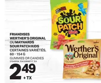 This promotion is available in various stores, view all products to get the cheapest FRIANDISES | GUMMIES OR CANDIES, 60 - 154 G. If you'd like to find out whether this product has a bigger discount in another store, check the category 'Grocery'. You may also find these offers interesting: FRIANDISES OU SOUR PATCH KIDS, 60-154 G | GUMMIES OR CANDIES, FRIANDISES WERTHER'S ORIGINAL OU MAYNARDS SOUR PATCH KIDS | GUMMIES OR CANDIES, 60 - 154 G & candies, 95–255 g.