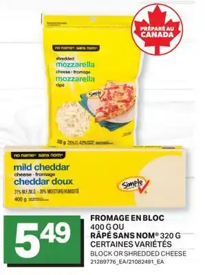 FROMAGE EN BLOC, 400 G OU RÂPÉ, 320 G | BLOCK OR SHREDDED CHEESE offer at L'Intermarché
