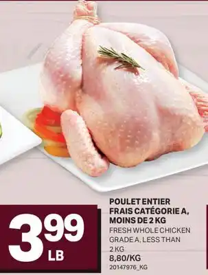 POULET ENTIER FRAIS CATÉGORIE A, MOINS DE 2 KG | FRESH WHOLE CHICKEN promotion at L'Intermarché