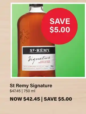 This St Remy Signature is currently on sale at LCBO. All details regarding the current price, offer conditions, and validity period can be found on this page. You can also explore other similar deals and promotions related to St Remy Signature to make the most cost-effective choice.