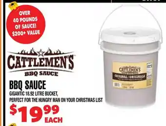 Cattlemen's BBQ Sauce Gigantic 18.92 Litre Bucket offers and online promotions