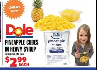 This Dole PINEAPPLE CUBES IN HEAVY SYRUP is now on sale at Len's Mill Stores. Check the current selection filled with great deals and discounts. Purchase Dole PINEAPPLE CUBES IN HEAVY SYRUP online via Len's Mill Stores website or get it at the best available price in person. Flyerdeals.ca gathers the best Dole PINEAPPLE CUBES IN HEAVY SYRUP promotions for you. Click on the bell icon to receive a free notification when this product is on sale again.Dole PINEAPPLE CUBES IN HEAVY SYRUP promotions for next week