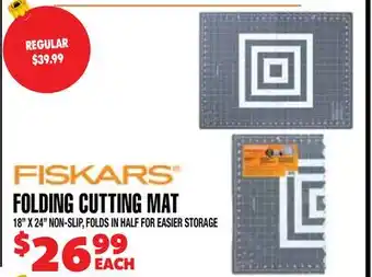 This promotion is available in various stores, view all products to get the cheapest Fiskars Folding Cutting Mat. If you'd like to find out whether this product has a bigger discount in another store, check the category 'Wholesale'. You may also find these offers interesting: Cutting Boards, 3' ×4' Mat & Flexible Cutting Mats.