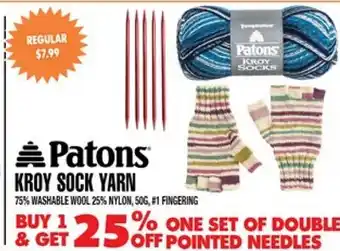 The Patons KROY SOCK YARN is available this week at Len's Mill Stores with a valuable discount. On this page, you will find details about the current promotional price, the promotion terms, and any special discounts. You can also explore other related deals and promotions for Patons KROY SOCK YARN to make sure you get the best value.