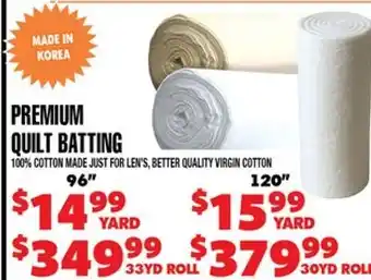 PREMIUM QUILT BATTING discount at Len's Mill Stores