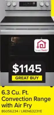The price of LG Stainless Steel Smart Electric Freestanding Range with Air Fry (6.3 Cu.Ft) - LREN6323YE can be found at the top of the page, together with the dates during which the offer is available. You can also check the price in the current Leon's flyer or on the Leon's website. Promotional offers assure you of buying Leon's products at the lowest price.