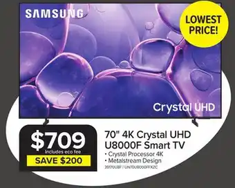 Samsung 70 4K Crystal UHD U8000F Smart TV offer at Leon's