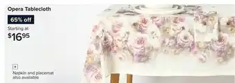 The Opera Tablecloth is available this week at Linen Chest with a valuable discount. On this page, you will find details about the current promotional price, the promotion terms, and any special discounts. You can also explore other related deals and promotions for Opera Tablecloth to make sure you get the best value.