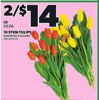 The price of 10 STEM TULIPS can be found at the top of the page, together with the dates during which the offer is available. You can also check the price in the current Loblaws flyer or on the Loblaws website. Promotional offers assure you of buying Loblaws products at the lowest price.
