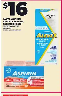 ALEVE, ASPIRIN CAPLETS, TABLETS GELS OR CHEWS promotion at Loblaws