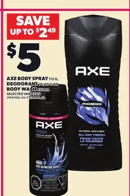 AXE BODY SPRAY 113 G, DEODORANT 76/85 G OR BODY WASH 473 G discount at Loblaws