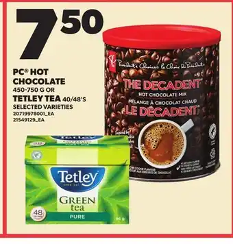 PC HOT CHOCOLATE, 450-750 G OR TETLEY TEA, 40/48'S promotion at Loblaws