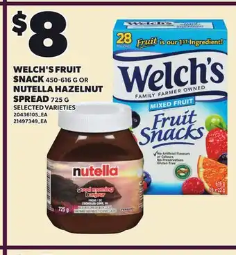 WELCH'S FRUIT SNACK, 450-616 G OR NUTELLA HAZELNUT SPREAD,725 G offer at Loblaws