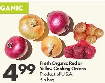 This promotion is available in various stores, view all products to get the cheapest Fresh Organic Red or Yellow Cooking Onions. If you'd like to find out whether this product has a bigger discount in another store, check the category 'Grocery'. You may also find these offers interesting: Yellow onions, YELLOW ONIONS & Your Fresh Market yellow onions.