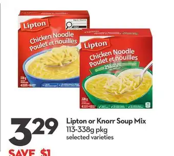 This promotion is available in various stores, view all products to get the cheapest Lipton or Knorr Soup Mix. If you'd like to find out whether this product has a bigger discount in another store, check the category 'Grocery'. You may also find these offers interesting: LIPTON OR KNORR SOUP, KNORR SOUP MIX OR SIDE DISH & LIPTON CUP-A-SOUP (4), KNORR SIDEKICKS or KRAFT DINNER.