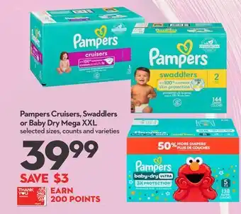 Pampers Cruisers, Swaddlers or Baby Dry Mega XXL promotion at Longo's