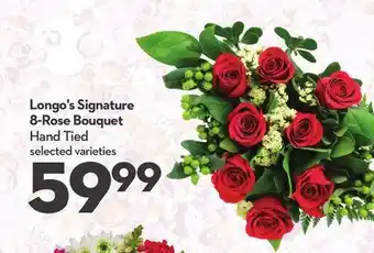 Longo's offers a wide collection of products, besides the Signature 8-Rose Bouquet. Keep an eye on the weekly Longo's flyer to find the best offers and promotions. Besides Signature 8-Rose Bouquet, you can also find the following offers: SIGNATURE ROSE BOUQUET, Signature 12 Stem Rose Bouquet & 12-ROSE BOUQUET.