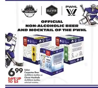 Sober Carpenter Beer 4x355mL bottles or Clever Mocktails 4x355mL bottles promotion at Longo's