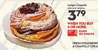 Longo's offers a wide collection of products, besides the Zeppole. Keep an eye on the weekly Longo's flyer to find the best offers and promotions. Besides Zeppole, you can also find the following offers: 8 Zeppole Cake, ZEPPOLE PASTRY, 90-110 G, OR FRESH FRUIT TART & offer 3.