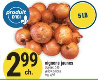 This promotion is available in various stores, view all products to get the cheapest OIGNONS JAUNES | YELLOW ONIONS. If you'd like to find out whether this product has a bigger discount in another store, check the category 'Grocery'. You may also find these offers interesting: OIGNONS JAUNES | YELLOW ONIONS, CAROTTES OU OIGNONS JAUNES | CARROTS OR YELLOW ONIONS & OIGNONS CELLO | YELLOW ONIONS, 5 LB.